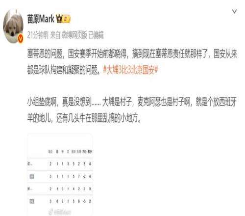 媒体人”卖萌谁在行“发文表示,国安这个防守,看的徐云龙想自己换双鞋上去踢了,这两场比赛证明了,助教有时候注定只有助教的能力。