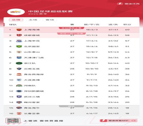 雷速体育10月24日报道宣称 在刚刚结束的两场关乎保级的中超比赛中,深圳新鹏城2-1击败保级对手三镇,反超对手位列第12位。