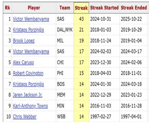文班亚马带领马刺击败鹈鹕,拿到了开赛2连胜,这是个可喜的事,但文班亚马的一个NBA纪录也在今日中断了,是什么纪录呢?
