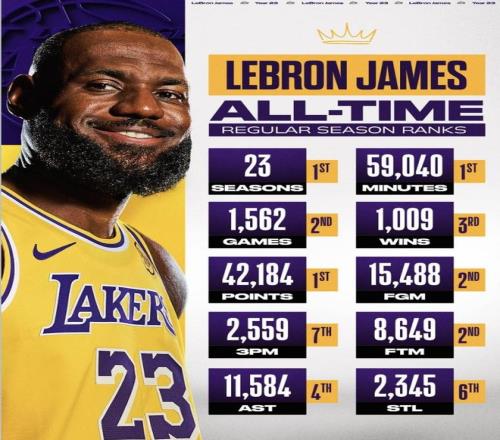 最近美国多家媒体报道,40岁的詹姆斯在对阵爵士的比赛中完成复出,一边用11分12次助攻带队140比126取胜,一边正式开启个人第23个NBA赛季,成为联盟历史上第一位打到23季、也是连续23季都有出场的球员。这一场球又把“40岁还在改写纪录”的话题炒热,也把他那张几乎被写满“历史前列”的常规赛纪录表重新推到眼前——在这样的背景下,再把詹姆斯和乔丹放在一起对比一回,谁配得上那个“历史第一人”的位置,就显得格外有意思了。