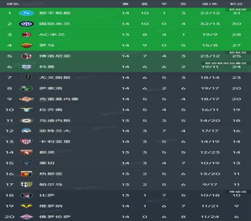 北京时间12月8日,意甲第14轮率先结束了7场比赛,我们一起看看最新积分榜变动!