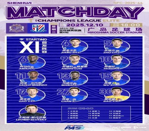 这是上海申花2025年的最后一场比赛,在联赛争冠收官阶段饱受伤病困扰的他们终于集齐完整班底。在排兵布阵上,球队全主力出战,路易斯、特谢拉和米内罗的三叉戟领衔五外援首发,伤愈归队的戴伟浚和谢鹏飞替补待命。