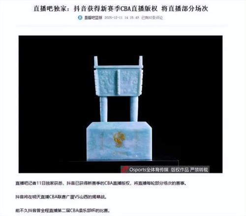 多家媒体和记者确认了这一重磅消息,体育资讯独家报道:抖音获得新赛季CBA直播版权,将直播部分场次。看来一些不重的场次没有直播。篮球记者贾磊报道,“抖音与CBA的版权合作将以直播+带货等模式带来全新的商业转化方式。”