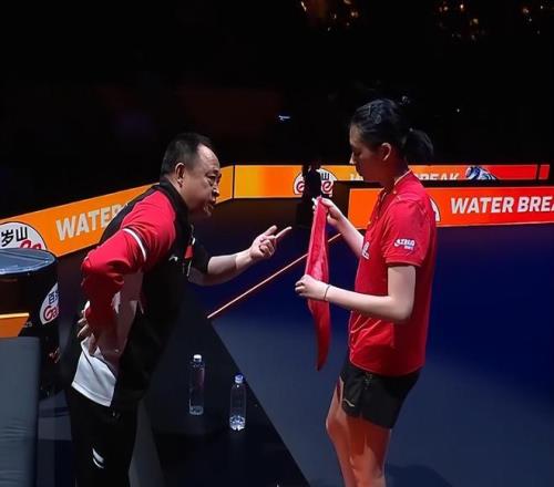 第七局开始,陈熠的开局有所好转,连得2分,继而取得4比2领先。朱雨玲的比赛经验非常丰富,她接发球抢攻连得2分,追到了4比4。陈熠叫了暂停。李大成指导叮嘱陈熠要坚定,一定要咬住。