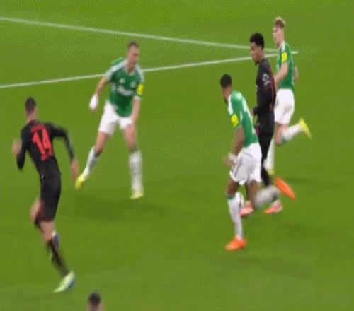 第13分钟,角球开出,安德里希头球打在吉马良斯身上入网,勒沃库森1-0