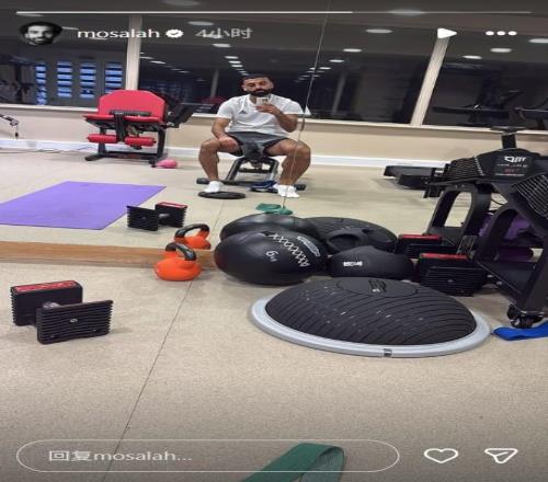 早些时候,利物浦球星萨拉赫在社交媒体上晒出了一张自己在健身房独自训练的自拍照,但没有配以任何文字。