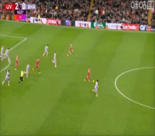 第1分钟,闪电战!埃基蒂克接戈麦斯头球抽射破门,利物浦1-0领先布莱顿!