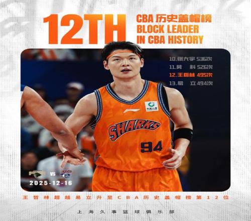 王哲林本场送出4次盖帽,CBA生涯盖帽总数上升至497次,超越易立的494次,升至CBA历史盖帽榜第12位。